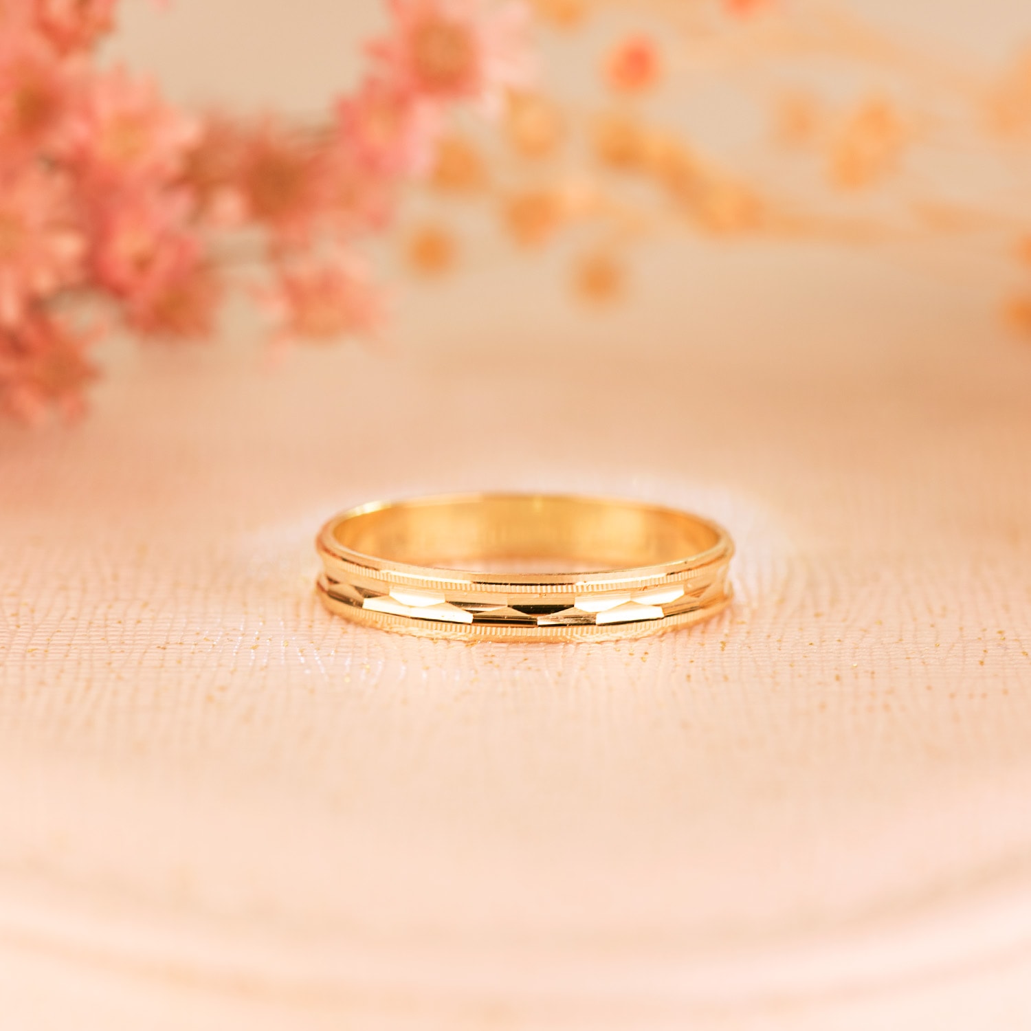 Alianza lisa y tallada con borde estriados