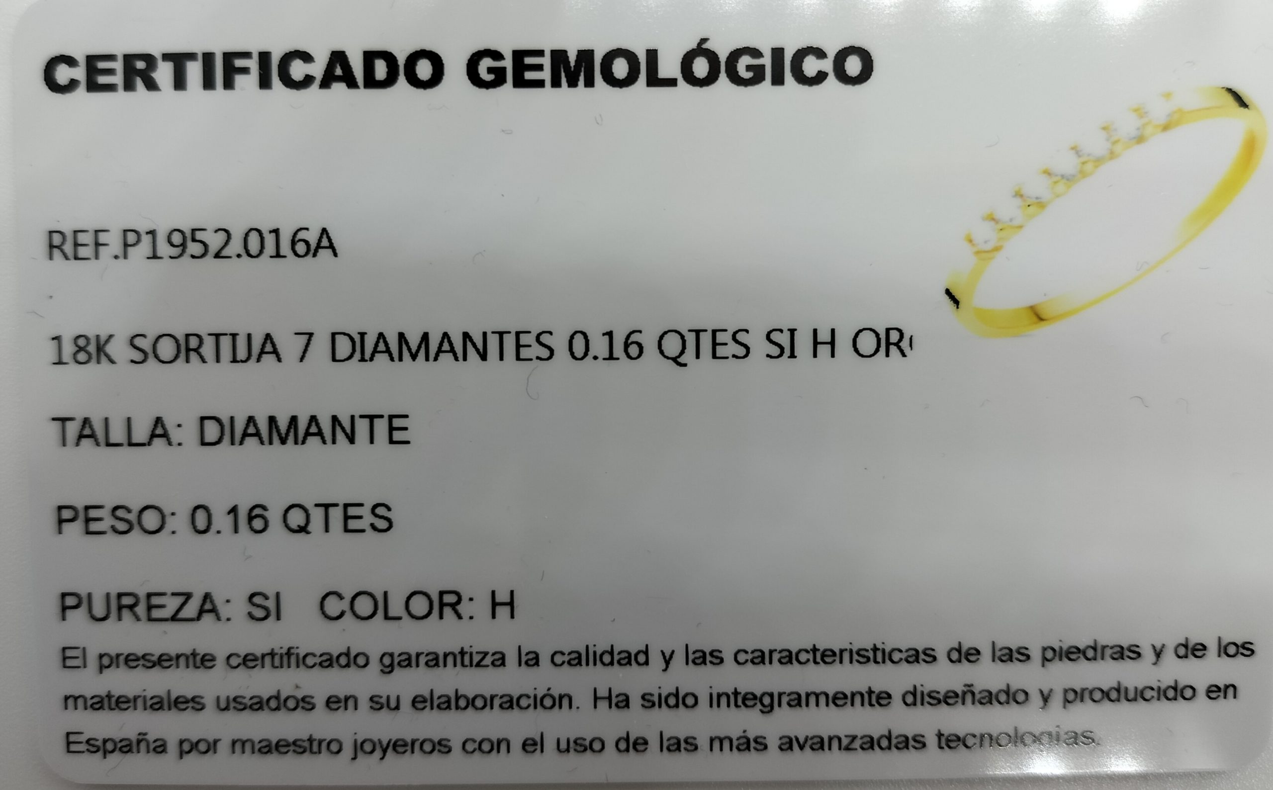 Con 7 diamantes talla brillante 0,160 QTS. pureza SI color H