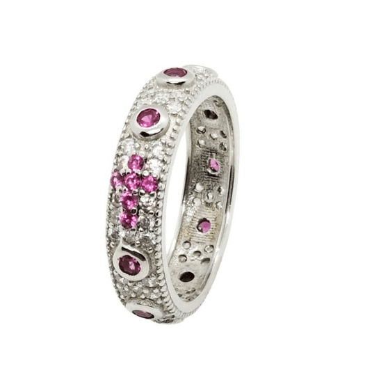 ANILLO PIEDRAS ROJAS CON CRUZ