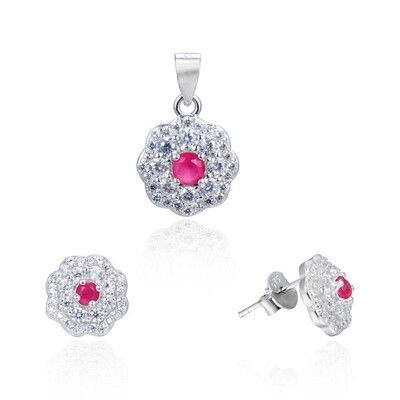 Plata de ley rodiada con piedra roja y circonitas blancas