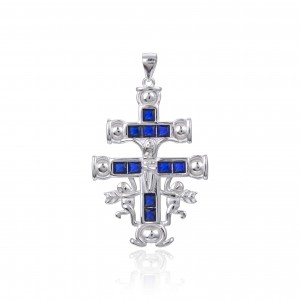 CRUZ DE CARAVACA CON PIEDRAS AZULES
