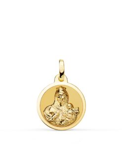 Por una cara tiene la imagen Corazon de Jesús y por la otra la Virgen del Carmen