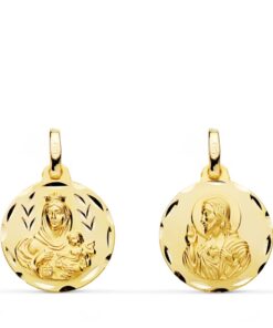 Por una cara tiene la imagen Corazon de Jesús y por la otra la Virgen del Carmen