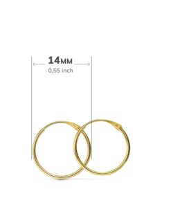 - Los pendientes aro oro 18 kilates niña o mujer redondo liso medida 14 x 1 mm. de Joyería Bastanchury – Elegancia y Durabilidad para Cada Ocasión