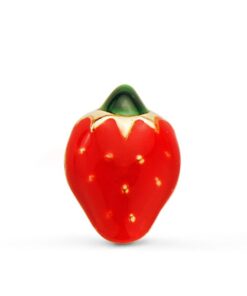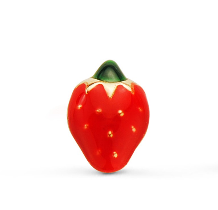 Pendientes bebé o niña fresa oro 18 kilates con esmalte. Cierre a rosca