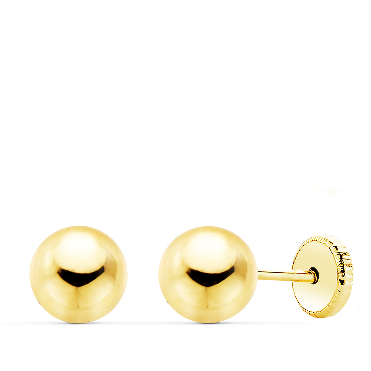 Pendientes bola lisa 6mm para mujer o niña. Oro 18K