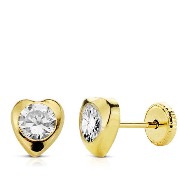 Pendientes corazón circonita para mujer, niña o bebé, oro 18 kilates.