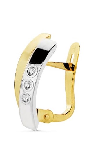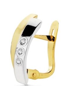 Pendientes de cierre bandas bicolor para mujer, oro 18k