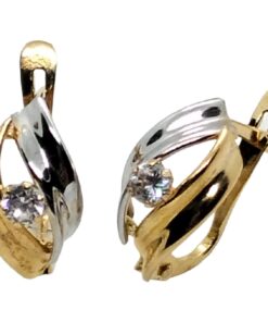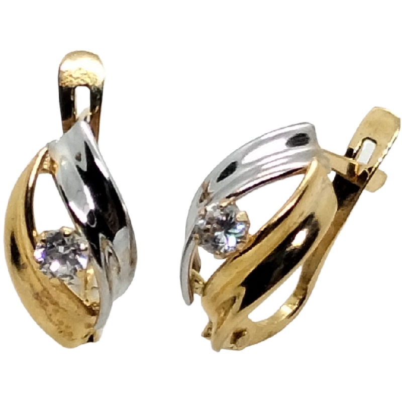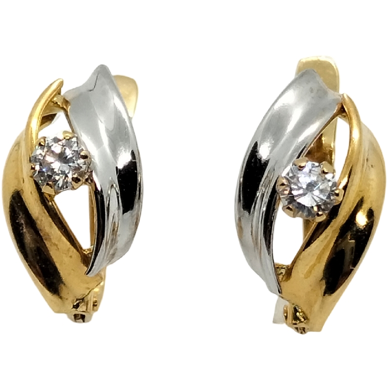 Pendientes de cierre bicolor piedra para mujer, oro 18k