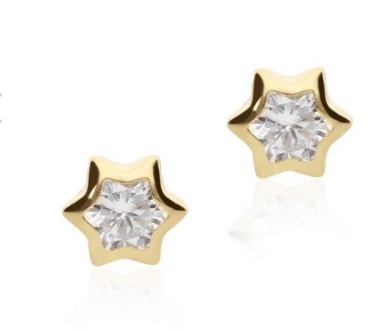 Pendientes estrella circonita mujer o niña ,oro 18 kilates.