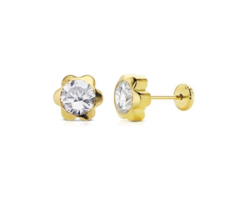 Pendientes mujer o niña margarita, oro 18 kilates.