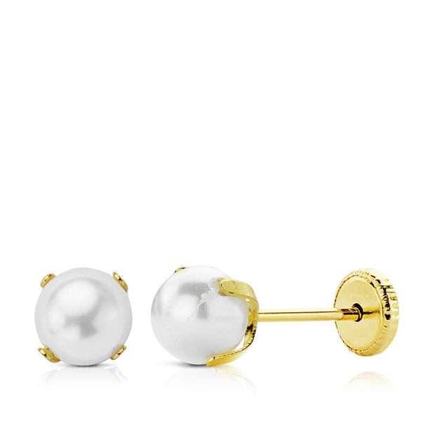 Pendientes perla 5mm para mujer, niña o bebé. Oro 18K