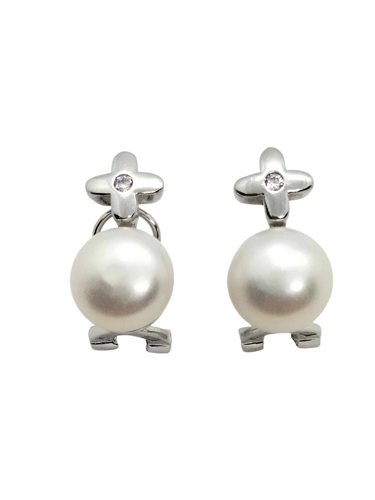 Pendientes bebé o niña flor con circonita, oro blanco 18 kilates