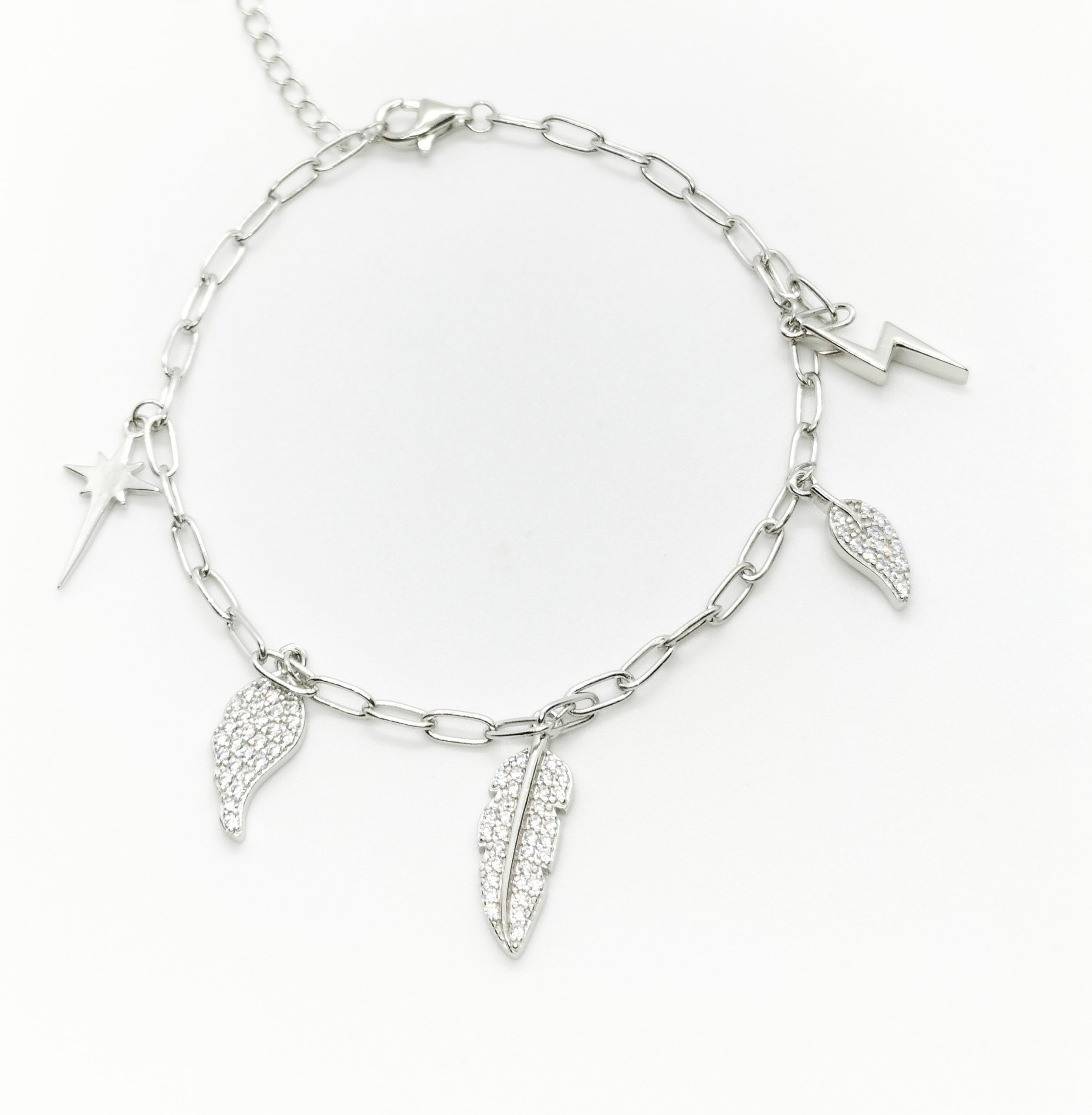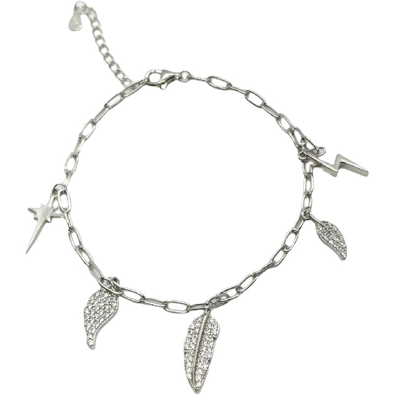 PULSERA PLATA HOJAS CON CIRCONITAS
